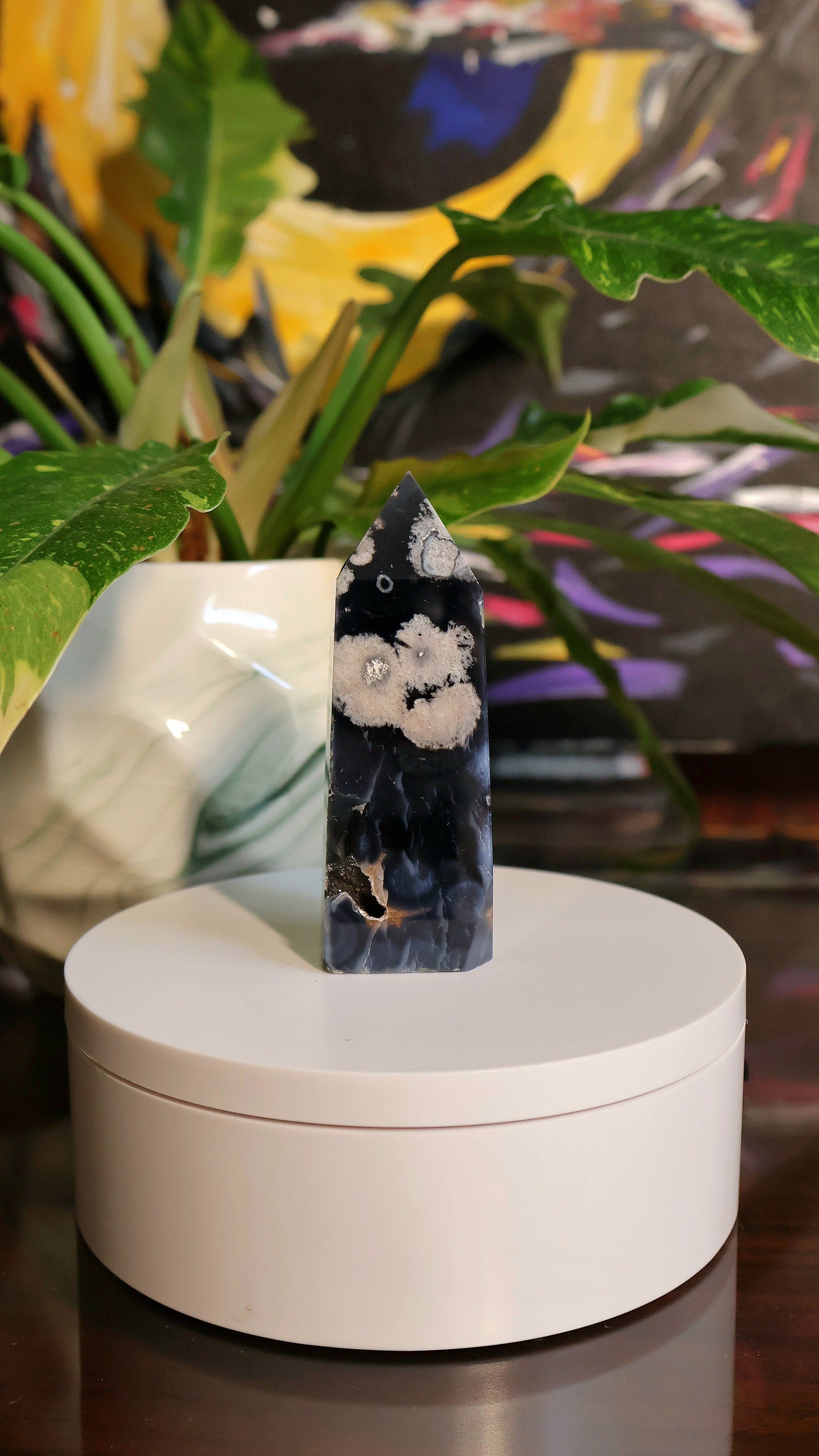 Black Flower Agate Tower 3.7 oz Natural Stone