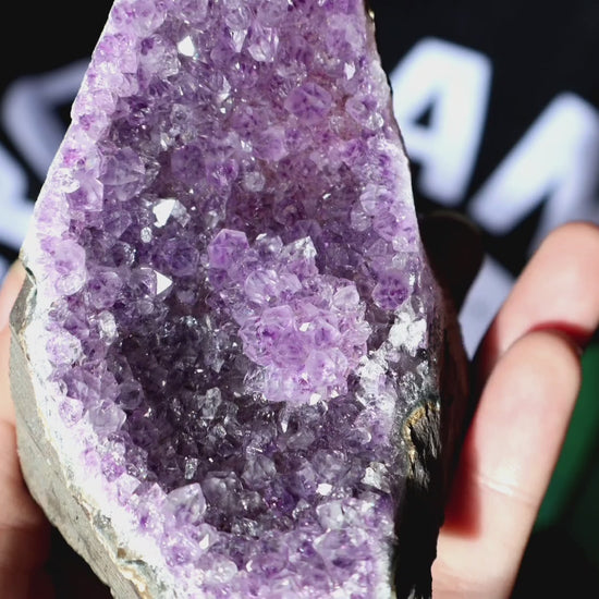 Our Uruguayan Amethyst is ethically sourced and cherished for its intense, royal purple hues—widely considered among the deepest and most vibrant in the world. Uruguay is home to some of the rarest and highest-quality amethyst, and each crystal sparkles with natural brilliance that makes it a striking décor piece as well as a spiritual tool. Known as a stone of peace and spiritual clarity, amethyst is said to quiet the mind, ease stress, and provide protection from negative energy. Many use it during meditation or sleep, believing it encourages vivid dreams, higher wisdom, and a sense of divine connection. Whether displayed as a centerpiece, placed in a sacred space, or carried as a personal talisman, Uruguayan Amethyst brings both beauty and balance into your life.